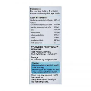 Аюрведические капли для здоровья глаз. Снимают любые покраснения и воспаления, защищают от пыли и грязи, снимают напряжение с глаз, увлажняют слизистую глаза. Эффективное средство против глазных инфекций и конъюнктивита, значительно улучшает зрение, препятствует появлению и развитию различных заболевании глаз. Помощь глазам при долгой работе за компьютером.